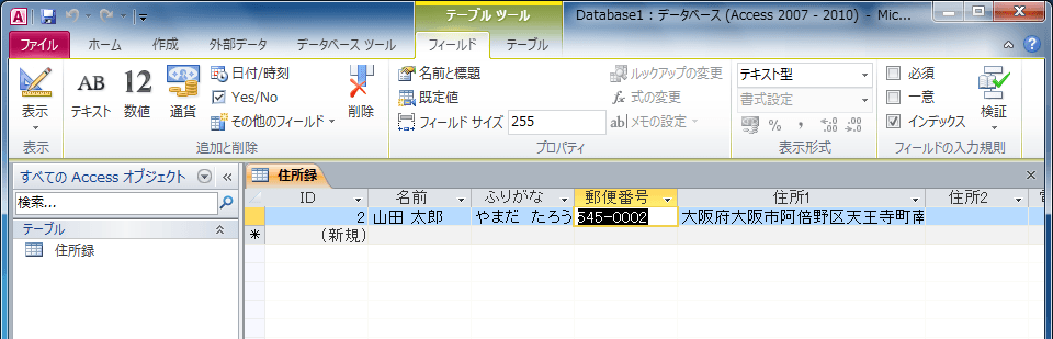 - 対象となるフィールドを右クリックして、ショートカットメニューより[フィールドの非表示]をクリックします。