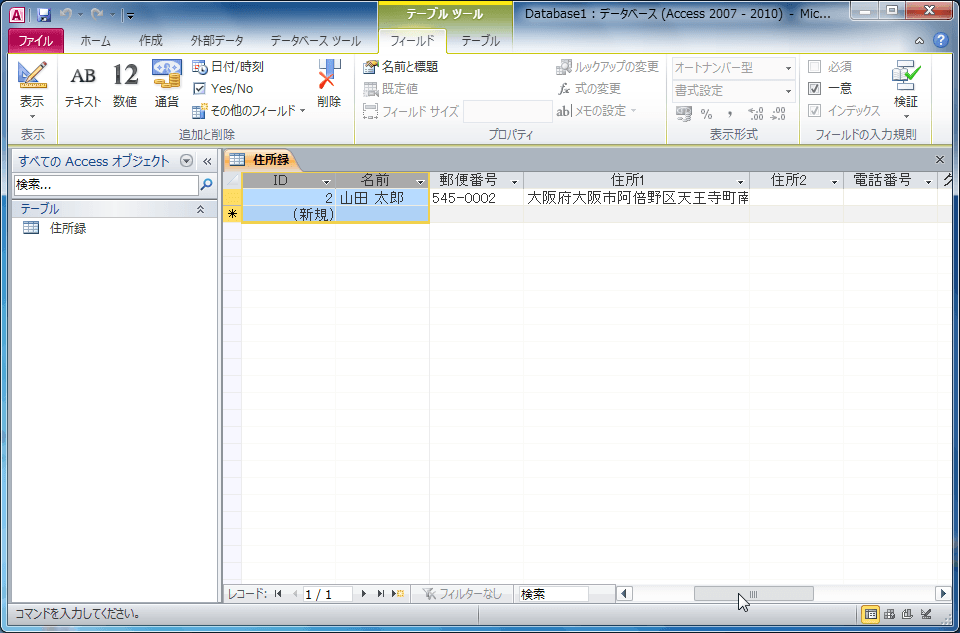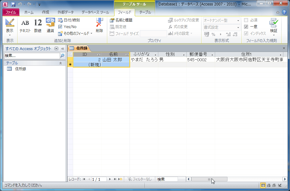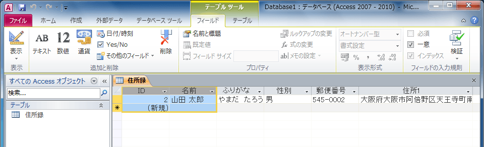 フィールドの作成と変更