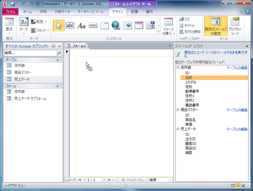 空白のフォームの作成