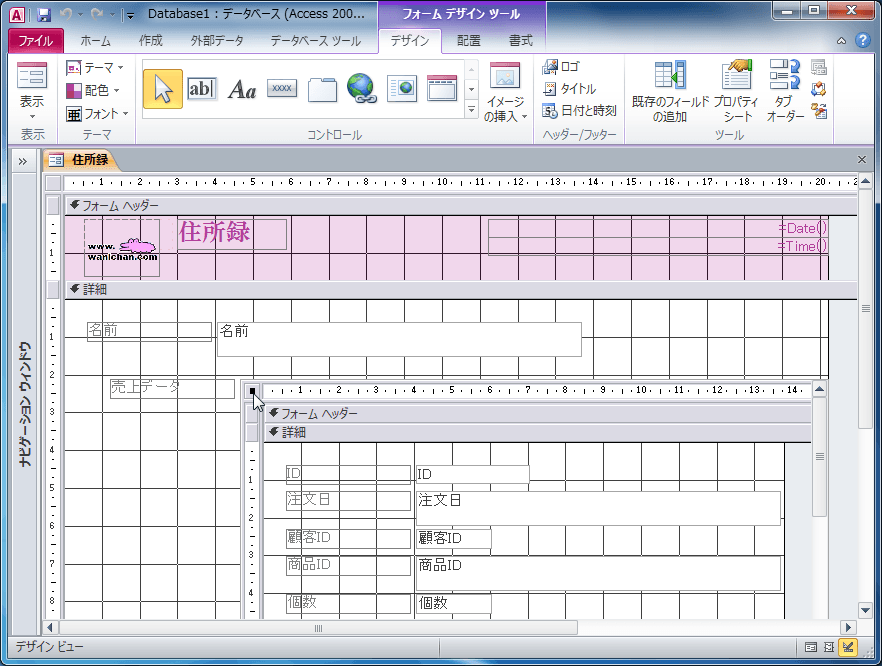 - デザインビューに切り替えておきます。