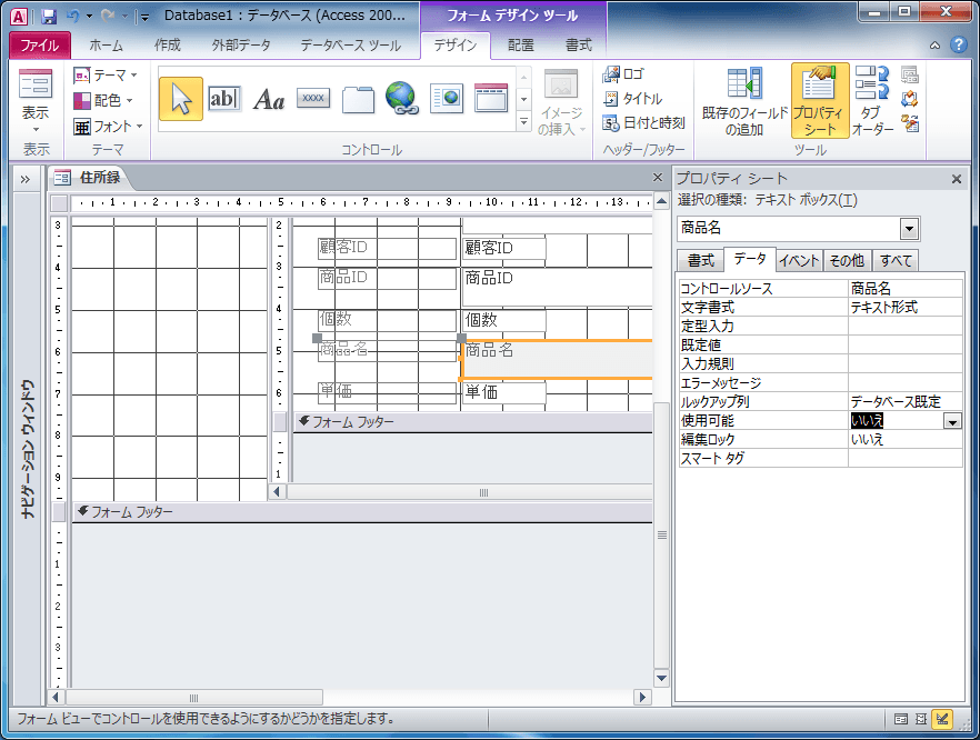 - フォームビューに切り替えて、入力不可になっていることを確認します。