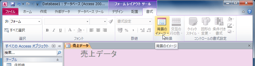 フォームの背景イメージを設定するには