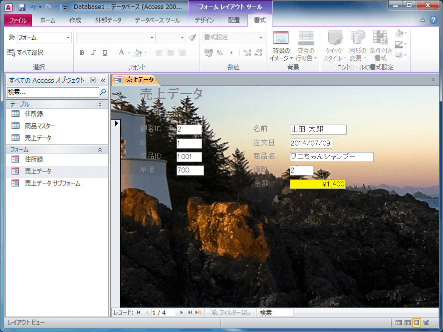 - フォームに背景イメージが設定されました。