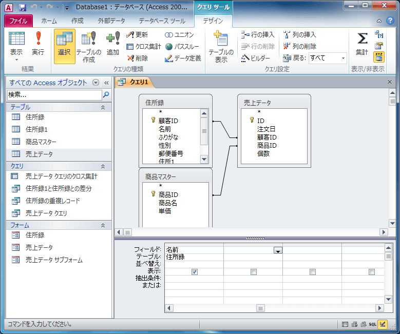 クエリのフィールドを削除するには