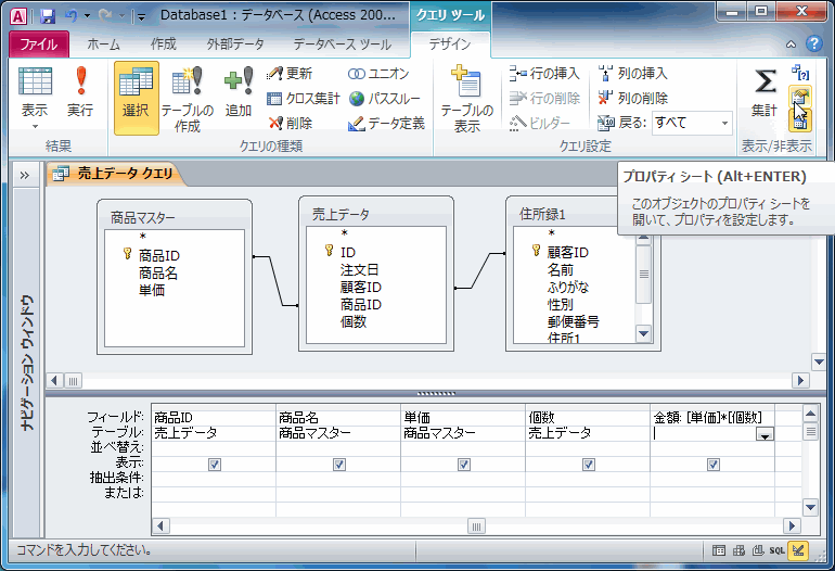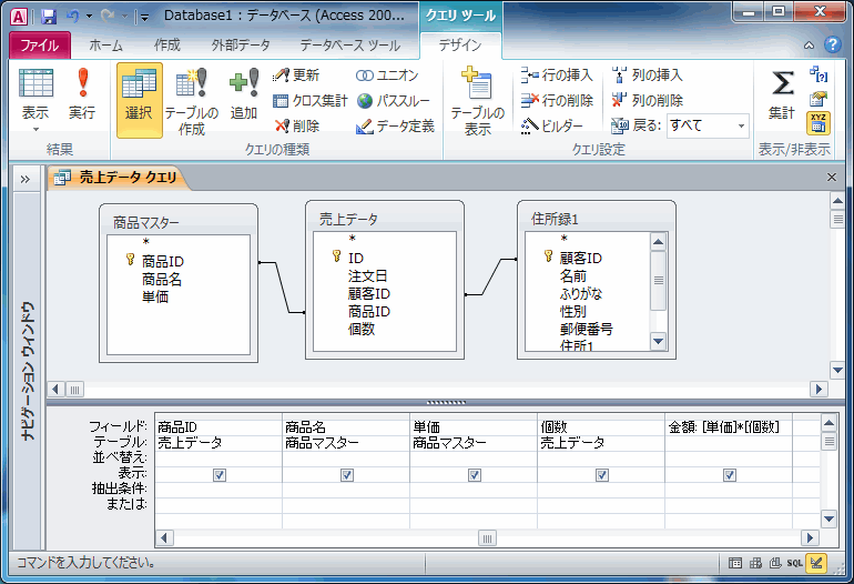 金額を求めるには、クエリでフィールドを作って計算していかなければいけません。実際にはクエリに限らず、フォームやレポートでも演算が行えます。