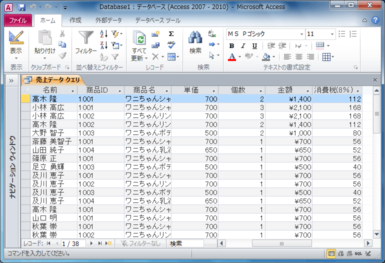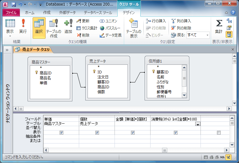 ここでは、小数点以下を切り捨てで[金額]フィールドの消費税8%を求めるフィールドを作成する方法について説明します。