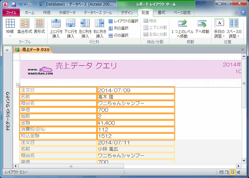 - [レポートレイアウトツール]の[配置]タブを開きます。