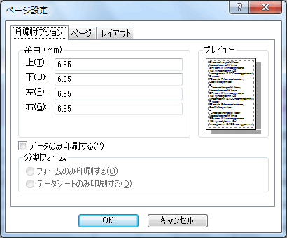 - ページ設定ダイアログボックスが表示されたら、[印刷オプション]タブを開きます。