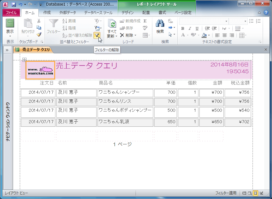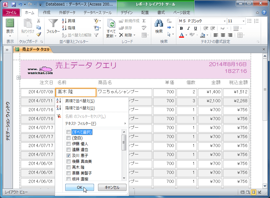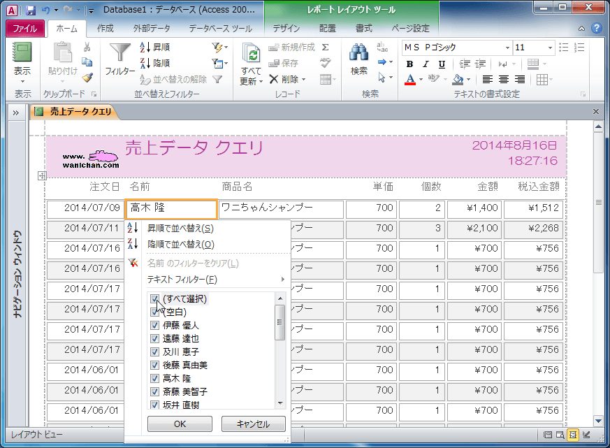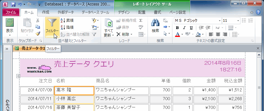 レコードの並べ替えやフィルターを実行してレポートを作成する