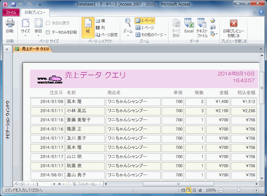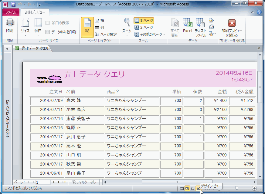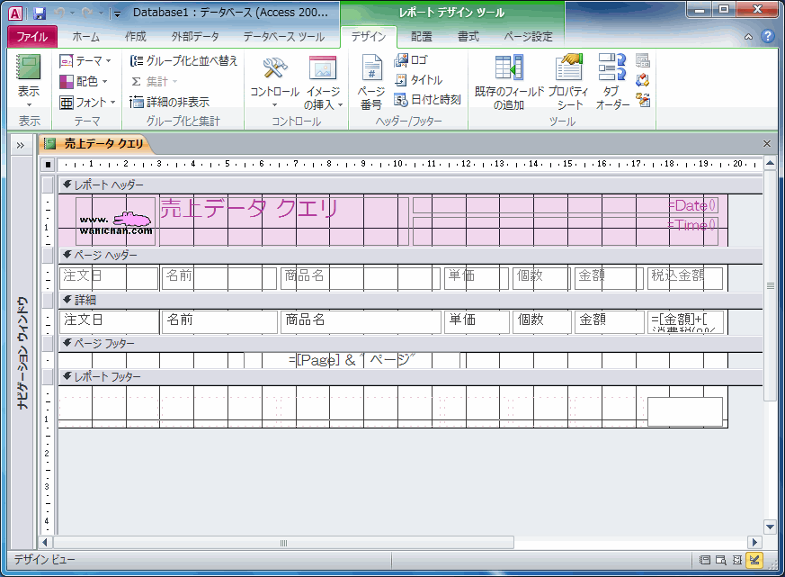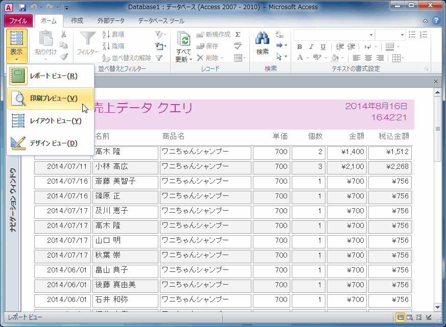 レポートビュー- データを表示するビューです。レイアウトの変更はできません。