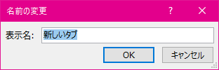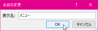 - [名前の変更]ダイアログボックスの[表示名]ボックスに、変更したい表示名を入力し、[OK]ボタンをクリックします。