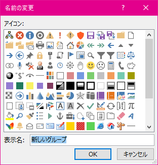 - [名前の変更]ダイアログボックスの[表示名]ボックスに変更したい名前を入力して、[OK]ボタンをクリックします。