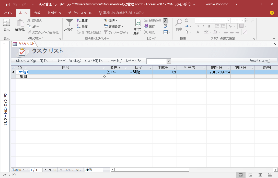 2016を起動していない場合は起動し、何か他のデータベースを開いている場合は[ファイル]タブをクリックします。