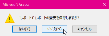 リレーションシップレポートを閉じると、保存するかどうかの確認メッセージが表示されます。不要であれば[いいえ]ボタンをクリックします。