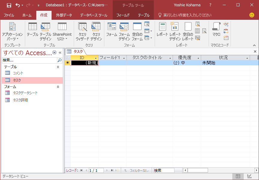 - [タスク]のテーブルを開くと下の図のようになります。