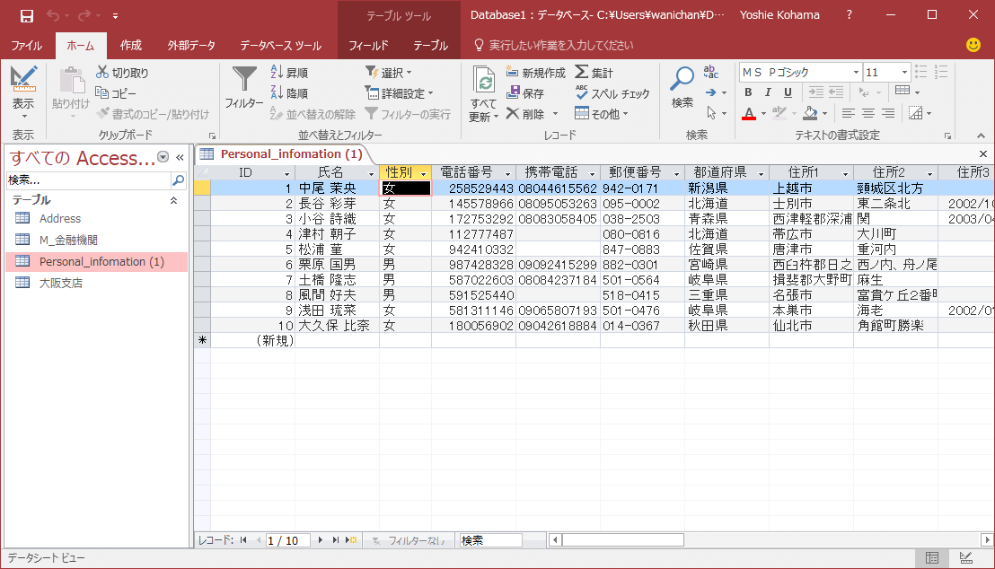 - データシートビューでテーブルを開いておきます。