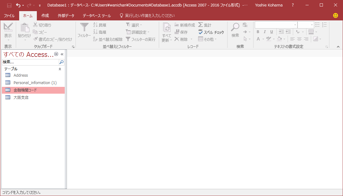 - そのままテーブルの名前を入力してEnterキーを押します。