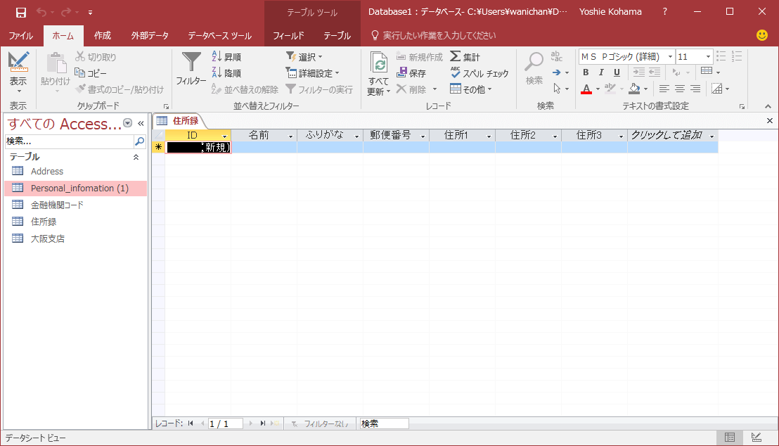 - 「まずテーブルを保存する必要があります。」というメッセージが表示されたら[はい]ボタンをクリックします。
