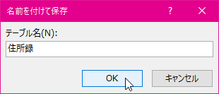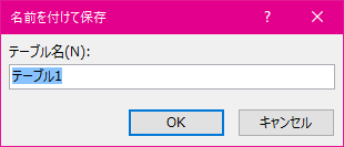 - [名前を付けて保存]ダイアログボックスが表示されたらテーブル名を入力して[OK]ボタンをクリックします。