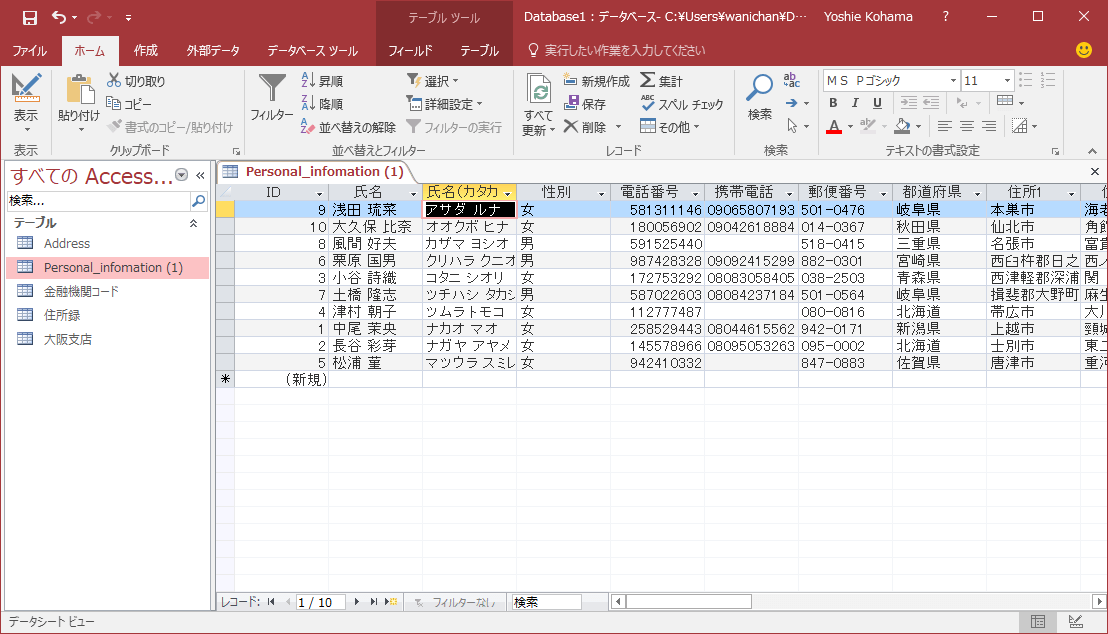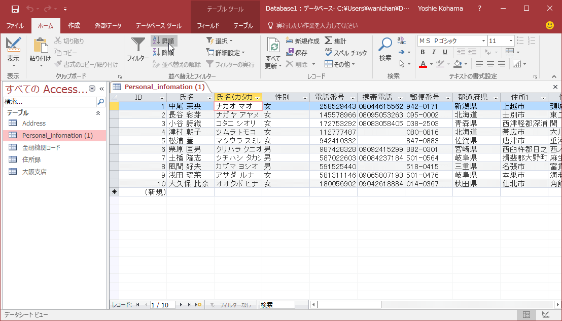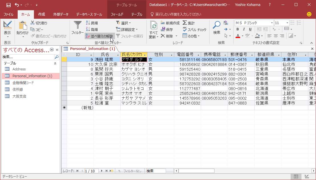 昇順または降順に並べ替えるには、対象となるフィールドを選択し、[ホーム]タブの[並べ替えとフィルター]グループの[昇順]または[降順]をクリックします。[ホーム]タブの[並べ替えとフィルター]グループの[並べ替えの解除]をクリックすると、並べ替えが解除されます。