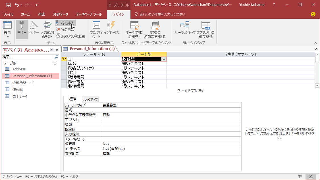 - IDフィールドがオートナンバー型に変更できたら保存します。