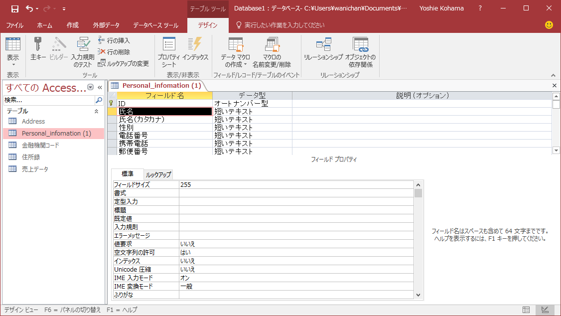 - フィールド名を入力し、主キーを変更します。