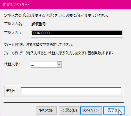 - 定型入力ウィザードが設定されました。