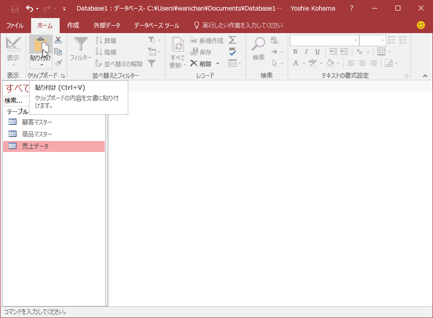 オートナンバーの欠番を直すには、まず、対象となるテーブルをコピーし、貼り付け時にテーブル構成のみのテーブルを生成しておきます。