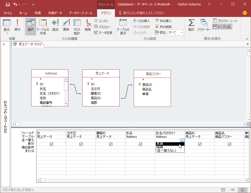 クエリのフィールドを降順または昇順に並べ替える方法は2通りあります。