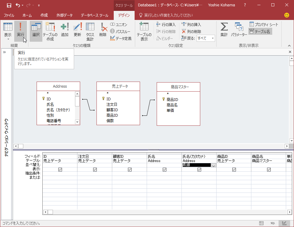 - [クエリの実行]をクリックします。