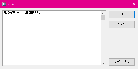 演算フィールドを編集しやすくするために、Access 2016でフィールド列幅を調整するほかに、ズームダイアログボックスを使用する方法もあります。右クリックして、ショートカットメニューより[ズーム]を選択します。