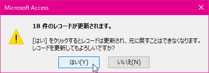 - 以下のメッセージが表示されたら[はい]ボタンをクリックします。