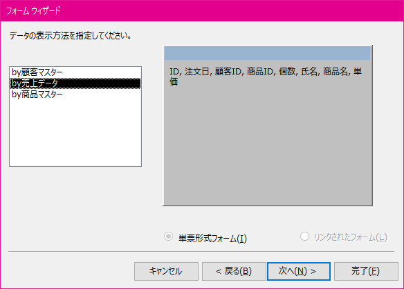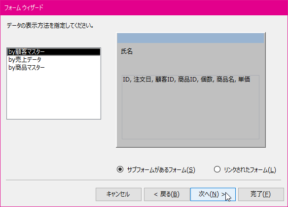 フォームウィザードを使ったフォームの作成