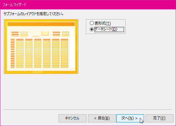 - サブフォームの場合、サブフォームのレイアウトを指定します。