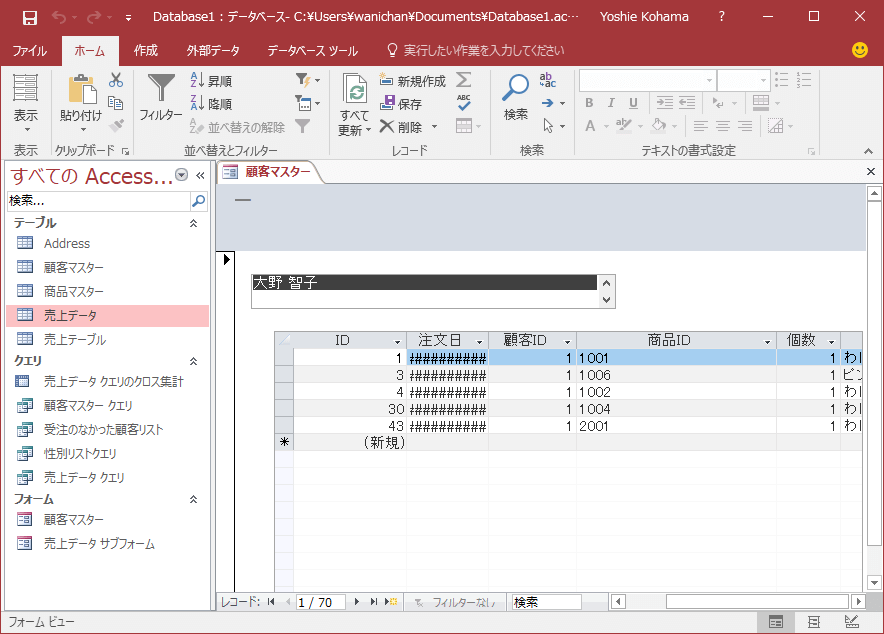 - サブフォームにするには、マスターテーブルを選択するとOKです。