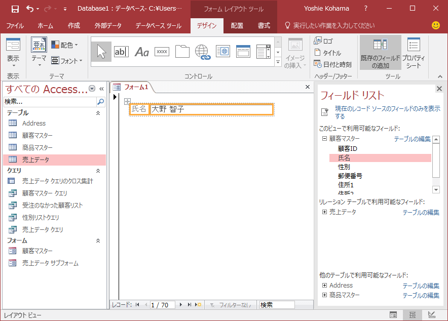 - データベースのすべてのテーブル・クエリのフィールドを展開します。