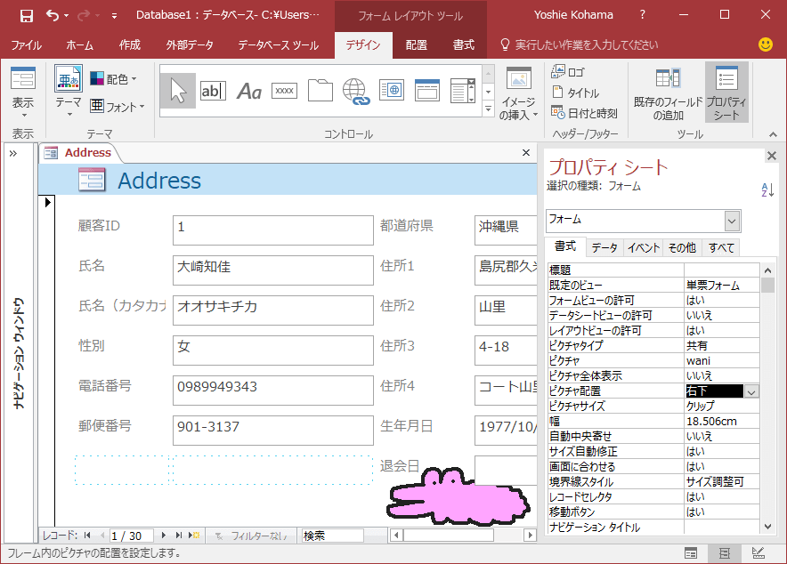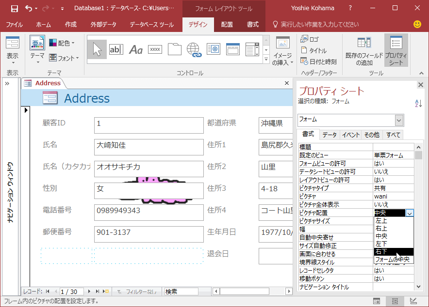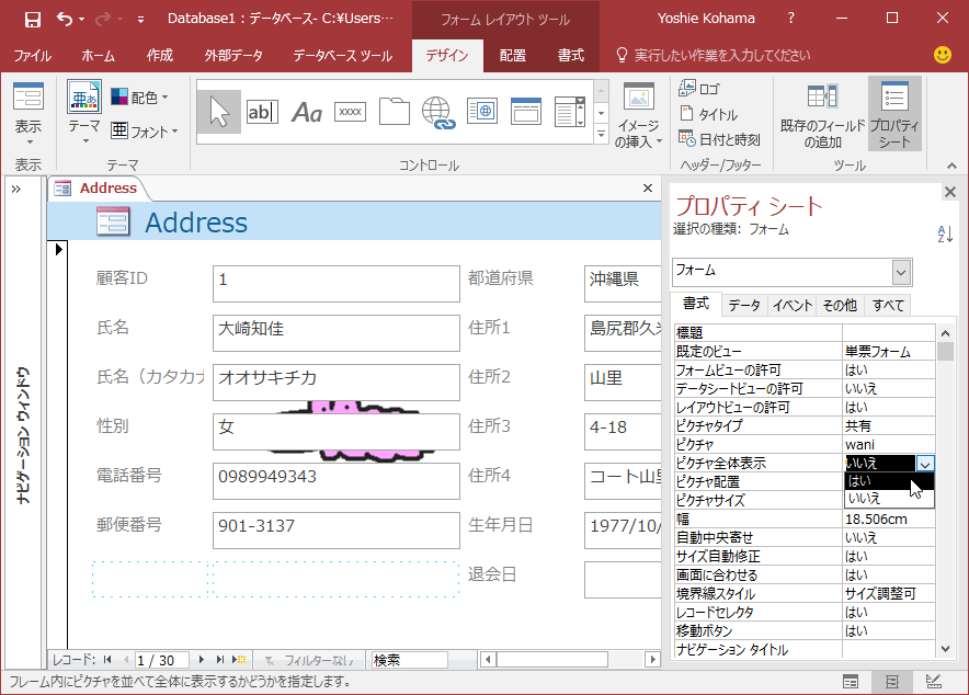 - [書式]タブの[ピクチャ全体表示]を[はい]にします。