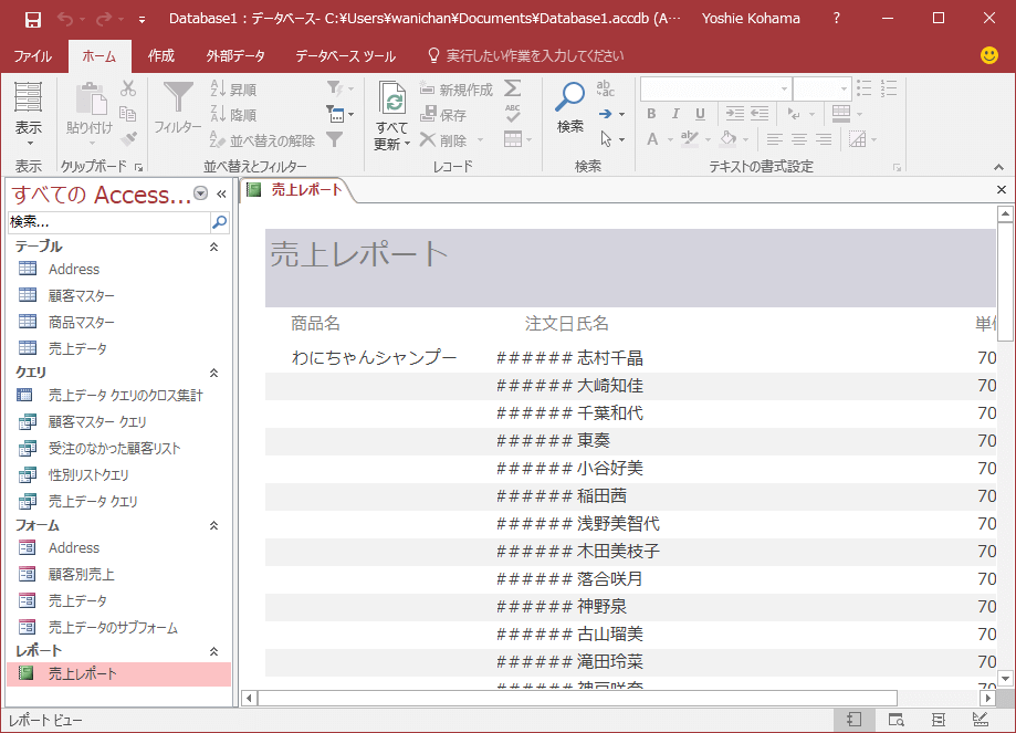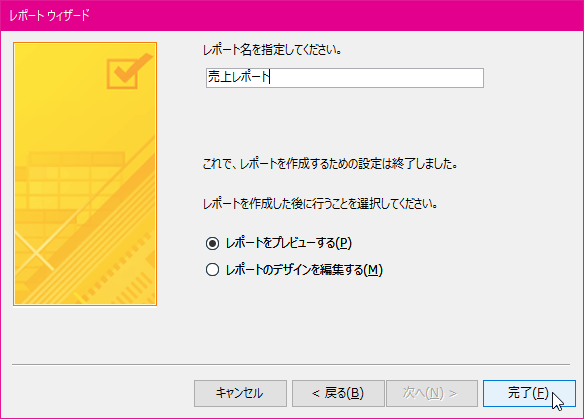 レポートウィザードを使用したレポートの作成