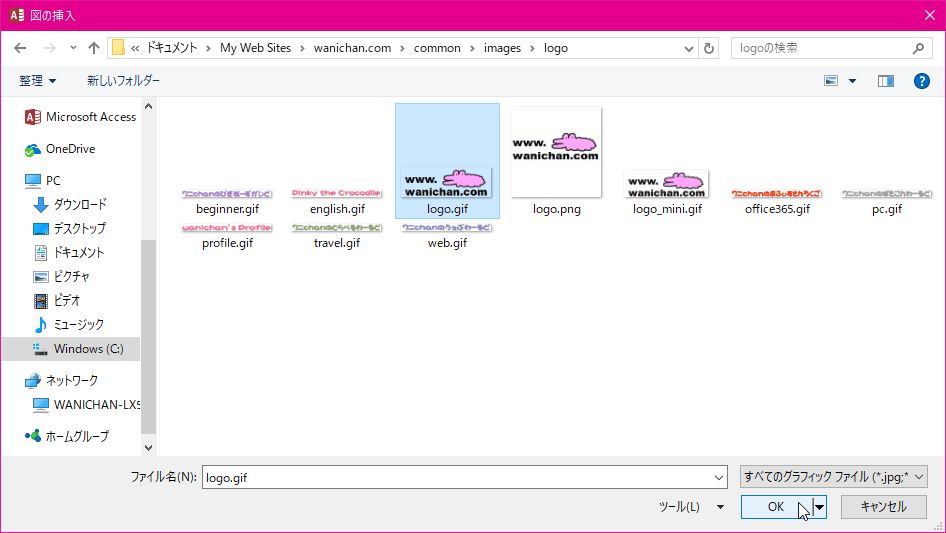 - ロゴ画像を選択して[OK]ボタンをクリックします。