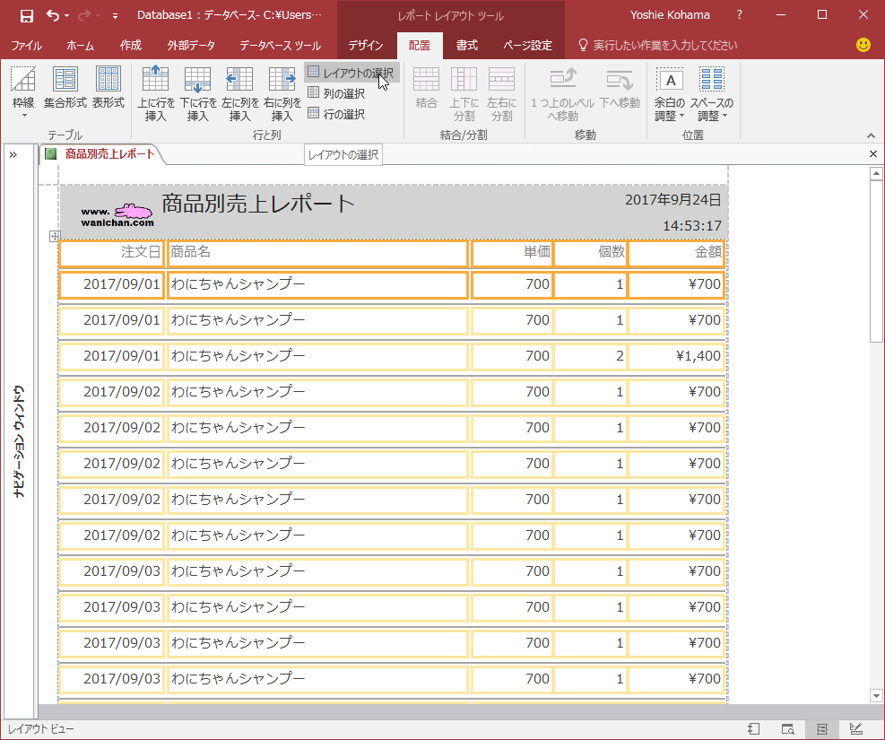 レポートを書式設定する|レポートの配置