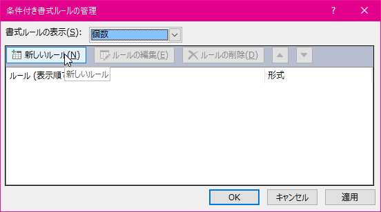 - [書式ルールの表示]ボックスから対象となるフィールドを選択し[新しいルール]ボタンをクリックします。