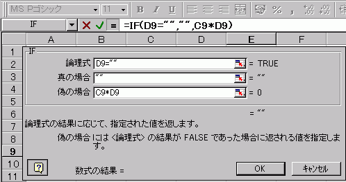 しかし、E9のセルには「=IF(D9="","",C9*D9)」という数式が入力されています。