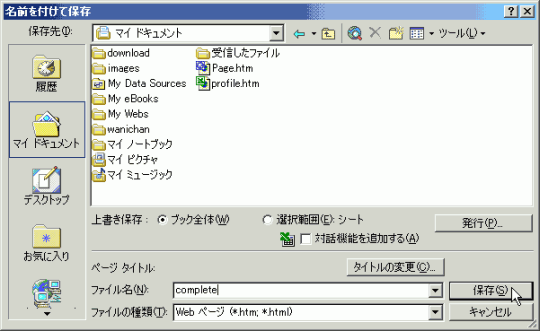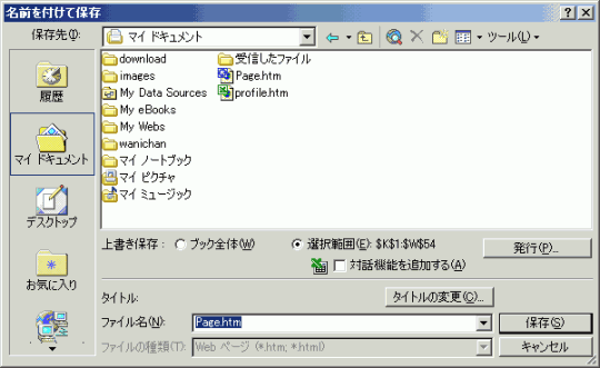 ファイル名、ページタイトルを指定して[保存]ボタンをクリックします。