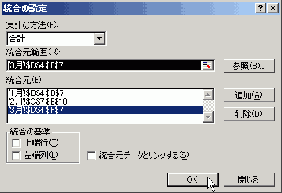 3月のデータ範囲まで追加できたら[OK]ボタンをクリックします。