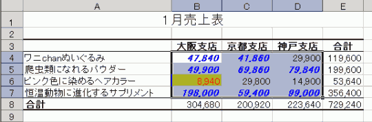 前セクションページの続きでしたら、「40000以上の場合は青色で太字で斜体文字」というのが有効になっているはずです。