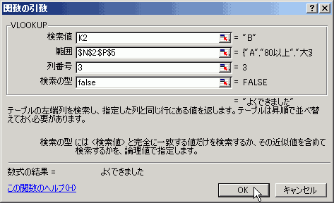 評価とコメントの表(N2:P5)の中から3列目の中から該当するコメントをピックアップするようにしましょう。