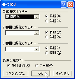 - [並べ替え]ダイアログボックスの[OK]ボタンをクリックします。
