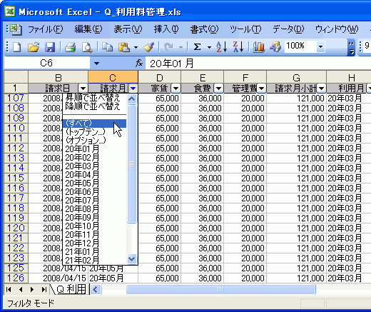 オートフィルタのボタンを有効にしたいけど、フィルタモードを解除したい場合は、そのフィルタボタンをクリックして、すべて表示するように指定します。