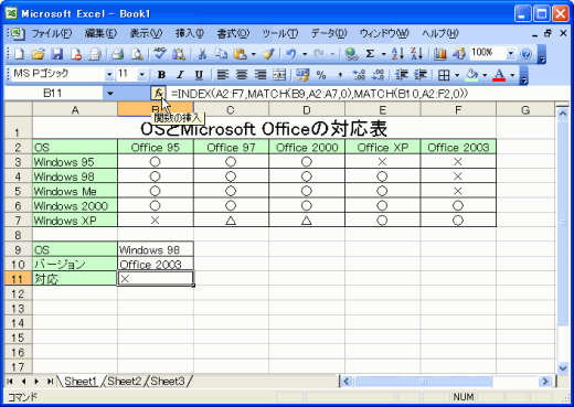 複数の関数が数式に使われている場合、まず、[関数の挿入]ボタンをクリックして、数式バーの編集したい関数名の中をクリックします。