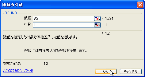 - 小数点第1位で四捨五入する場合は[桁数]に「1」と入力